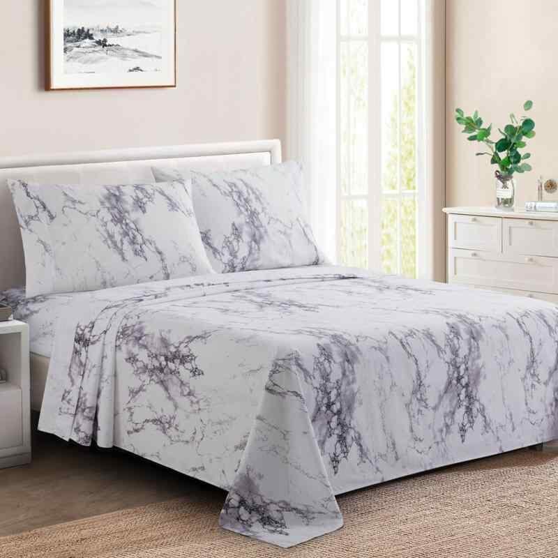 寝具セット グレー ホワイト 大理石調 マーブル柄 ボックスシーツ 掛け布団カバー 枕カバー 4点セット ポリエステル おしゃれ スタイリッシュ モダン 高級感 寝室 ベッドルーム 模様替え 来客用