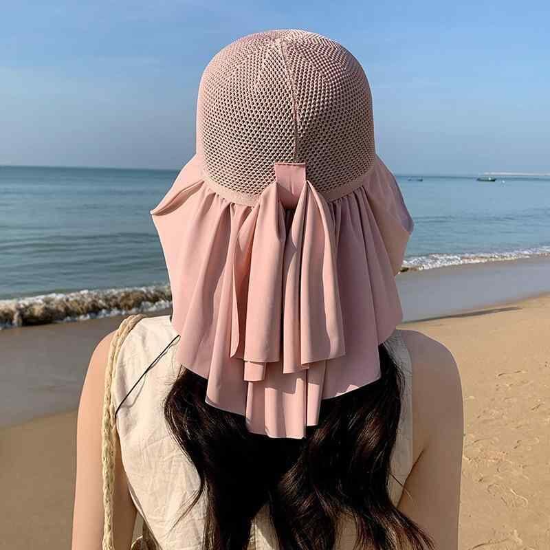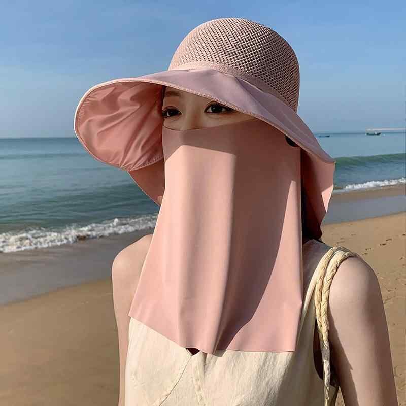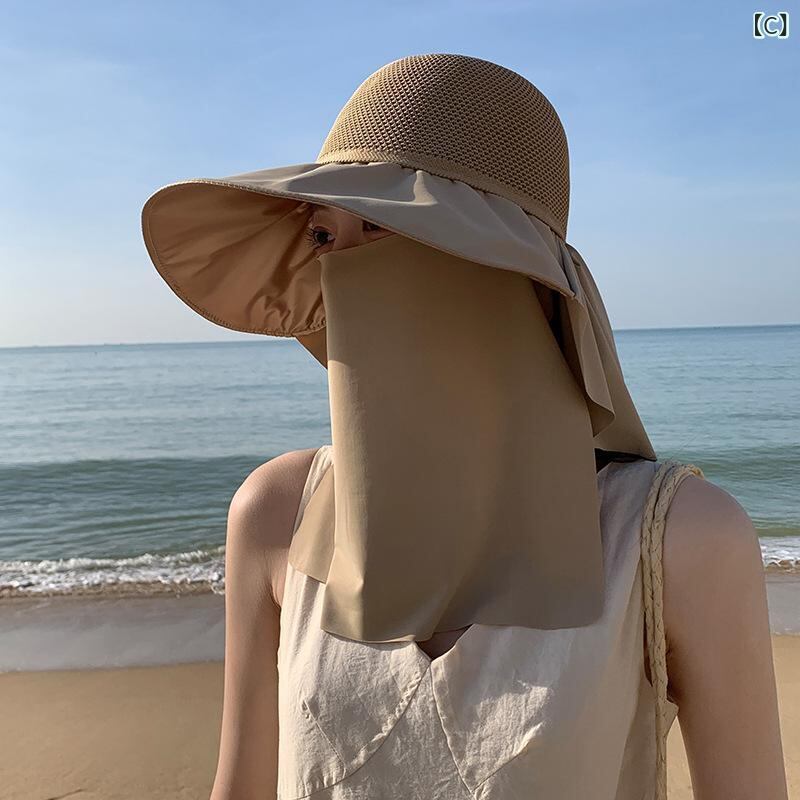 日よけ帽子 レディース 春夏 UVカット つば広 フード付き フェイスカバー ネックガード ショール 日焼け防止 アウトドア 軽量 ポリエステル