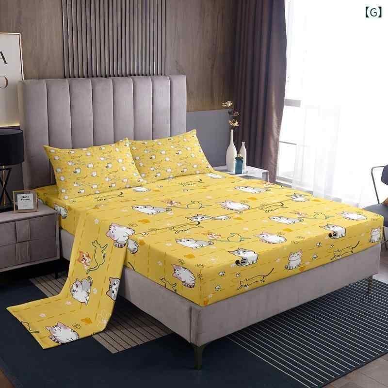 寝具セット ボックスシーツ キャラクター 動物柄 猫プリント マイクロファイバー 快適 肌触り良い 4点セット 寝室 寮 一人暮らし 新生活 ベッドリネン