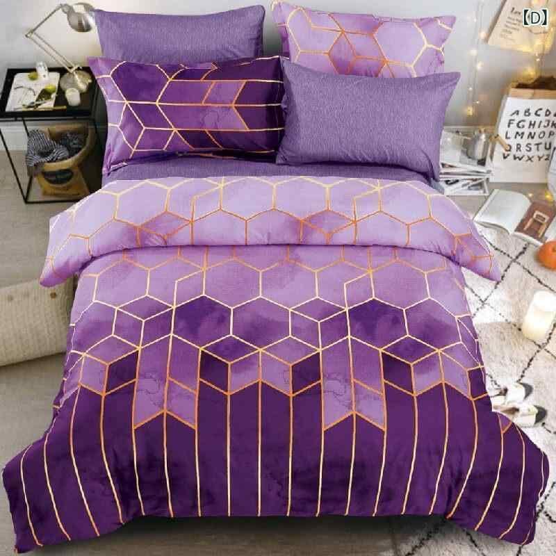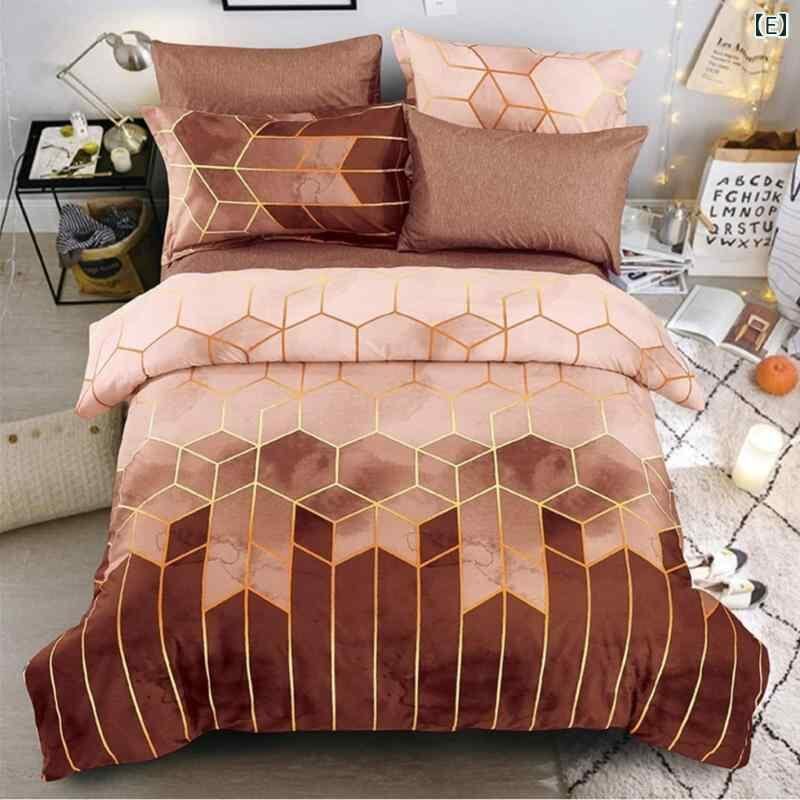 寝具セット ベッドカバー 掛け布団カバー 幾何学模様 ゴールドライン柄 高級感 モダン シンプル 活性染色 ポリエステル グリーン 寝室 インテリア 3点セット