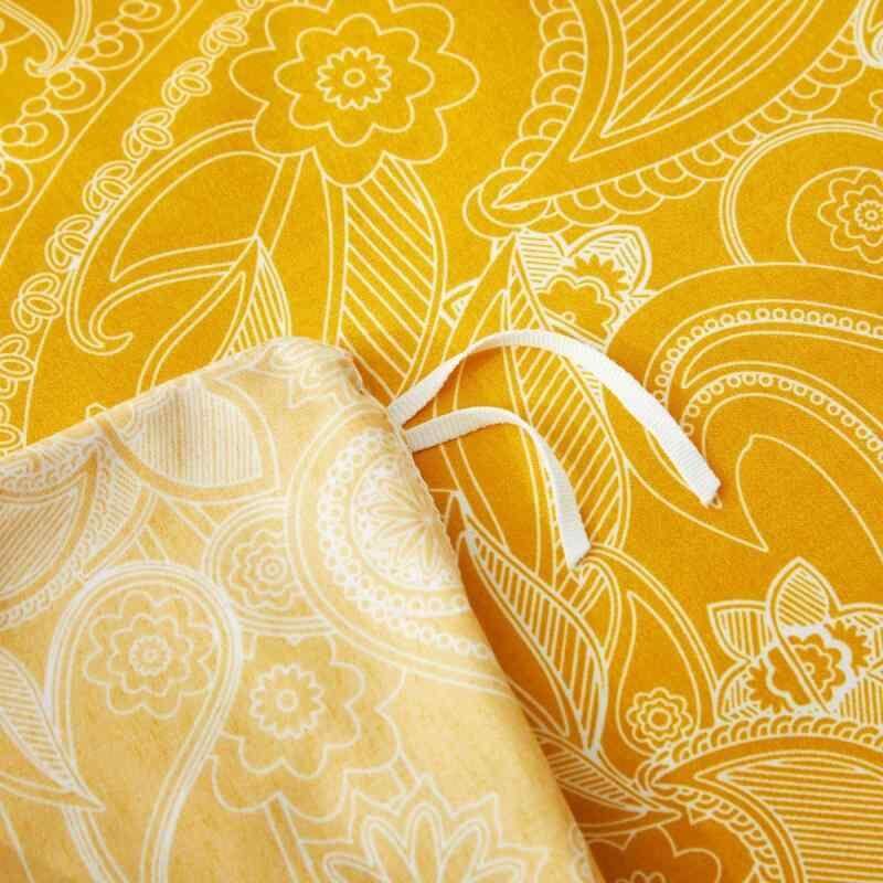 掛け布団カバーセット イエロー ペイズリー柄 ボタニカル柄 3点セット ボックスシーツ ピローケース 北欧風 ポリエステル ピーチスキン加工 活性染料プリント