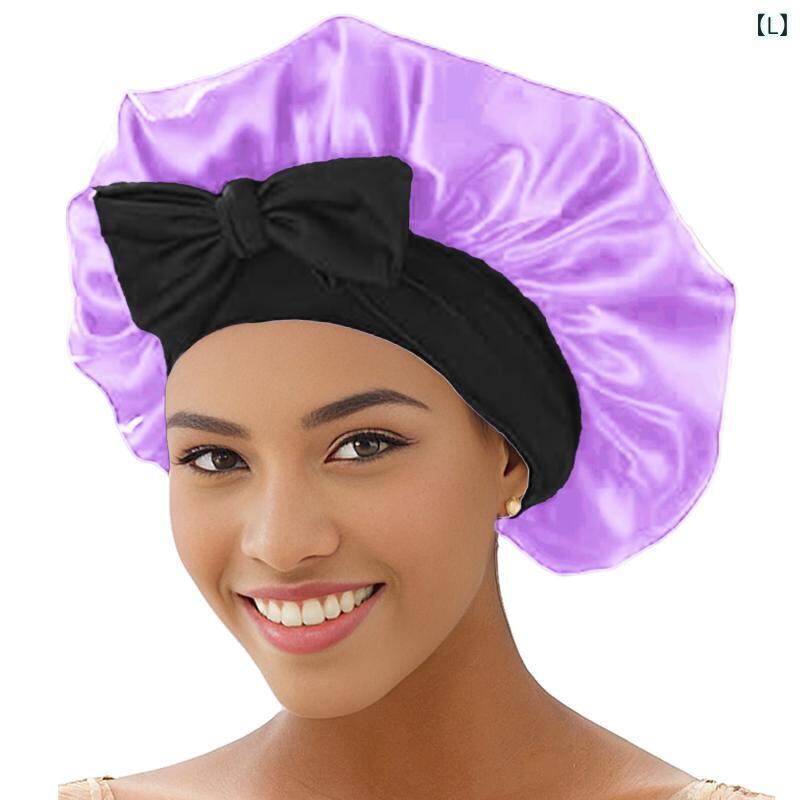 ナイトキャップ レディース 女性用 サテン製 艶感 美髪 ヘアケアキャップ 就寝用 ブラック縁 ピンク パープル 伸縮性 通気性 バスキャップ フリーサイズ 寝癖防止 摩擦軽減 保湿 静電気防止