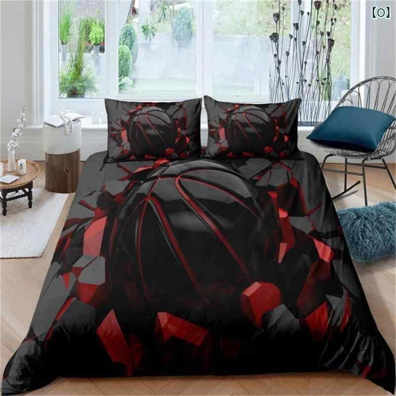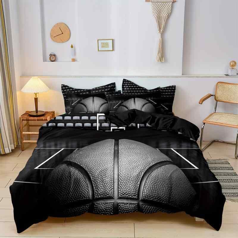 掛け布団カバー ブラック バスケットボール柄 3Dデザイン 3点セット ポリエステル 速乾 デジタルプリント カレッジスタイル スポーツ 寝具セット