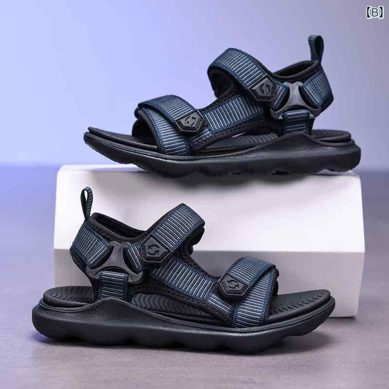 スポーツサンダル 男の子 キッズ 春夏 滑り止め ソフトソール カジュアル 大きいサイズ オープントゥ 軽量 ビーチ用 テキスタイル EVA マジックテープ チェック柄 ブラック グレー ダークブルー カーキ