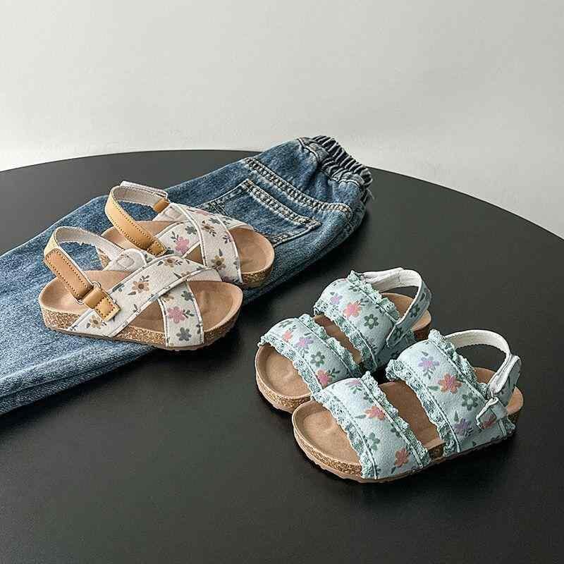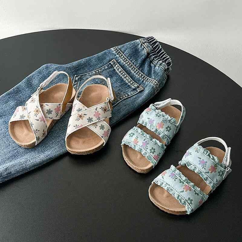 サンダル 女の子 キッズ ベビー 幼児 ガールズ 夏 サマー プリンセス風 小花柄 フラワー柄 合成皮革 滑り止め ビーチ 水遊び 学生 通学 カジュアル ブルー ベージュ