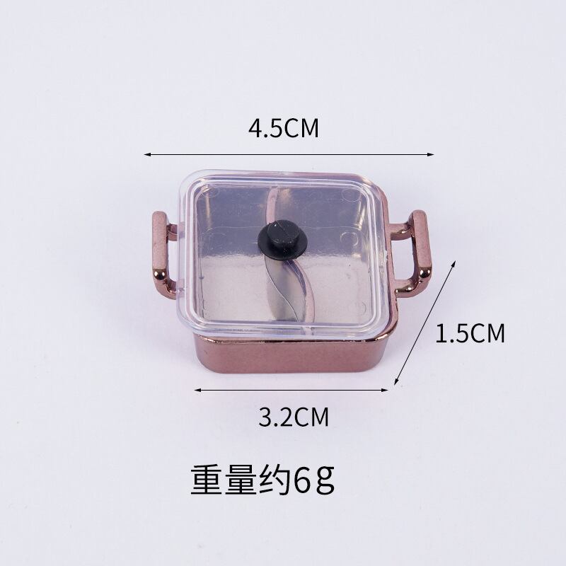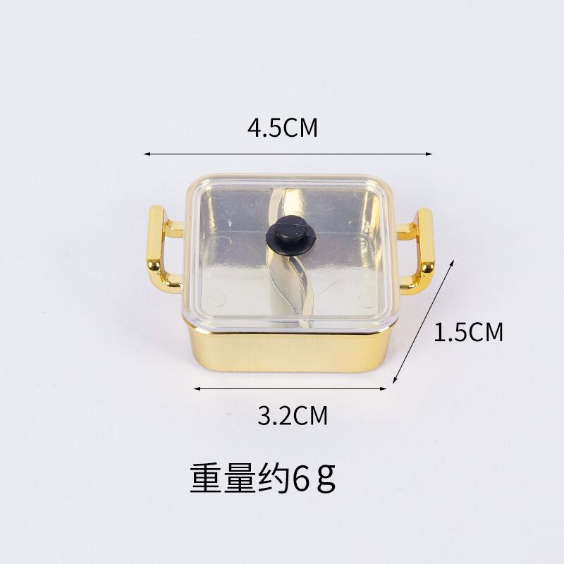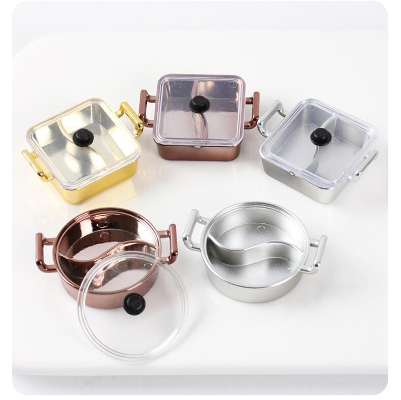 ミニチュア ごっこ遊び 火鍋 道具 DIY 手作り パーツ プラスチック製 蓋付き 円形 正方形 鴛鴦鍋 ローズゴールド ゴールド キッチン用品 調理器具 アイテム 料理おもちゃ