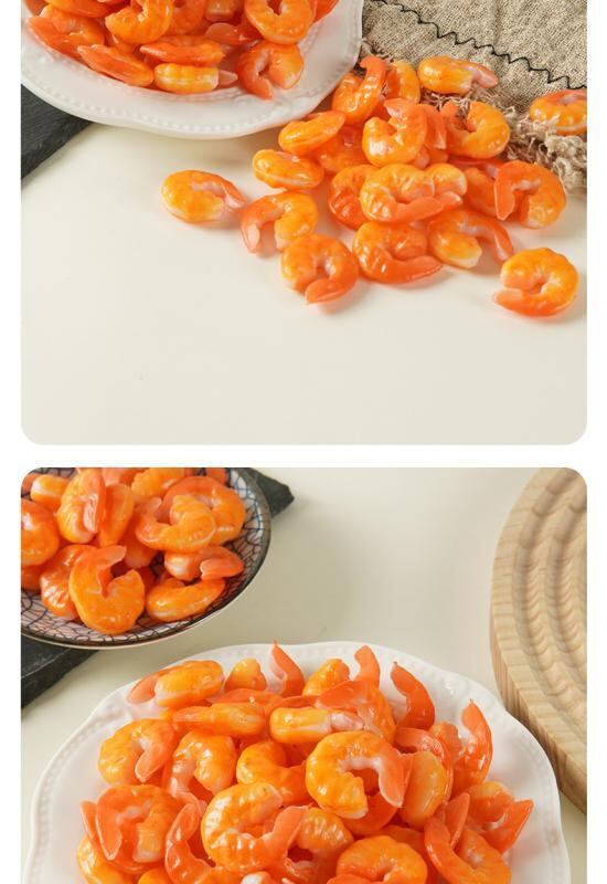 キーホルダー 食品サンプル リアル ミニチュア 軽量 精巧 むきエビ エビのしっぽ PVC イエロー レッド キーリング バッグチャーム ユニーク 小物 飾り