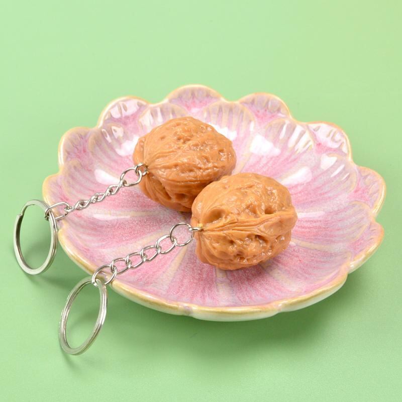ミニチュアオブジェ PVC製 リアル フェイク クルミ ウォールナットデザイン 手のひらサイズ 手遊び ストレス解消 置物 バッグチャーム キーホルダー ストラップ アクセサリー 飾り モダン シンプル