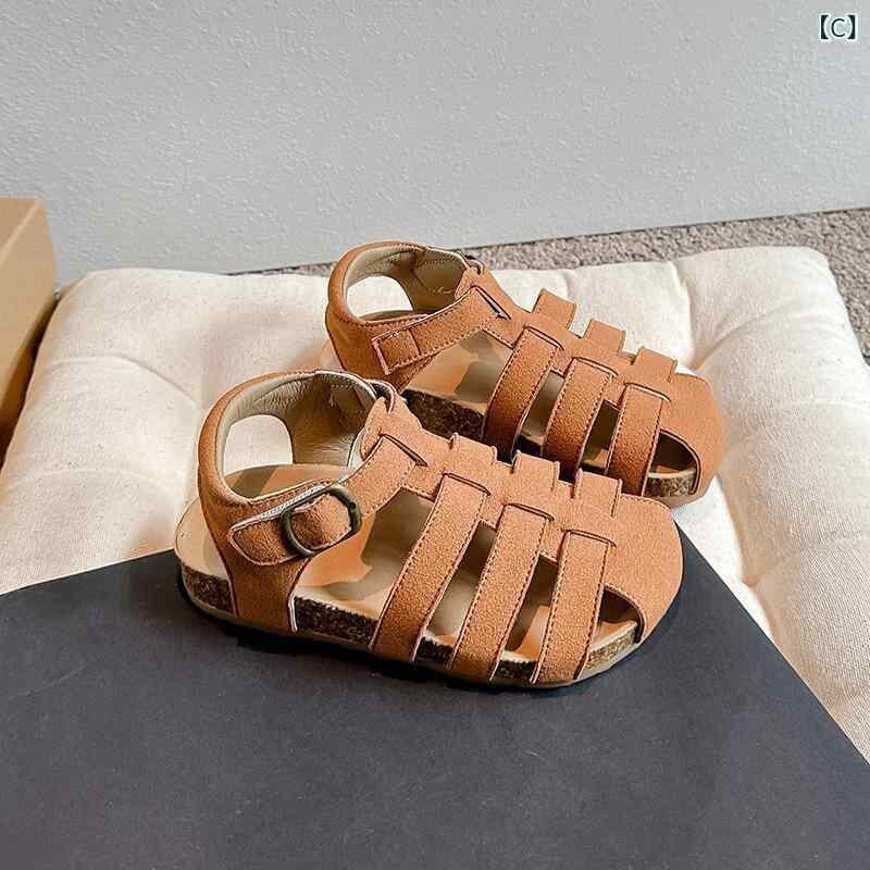 キッズ サンダル 男の子 女の子 ベビー クローズドトゥ マジックテープ 夏 人工皮革 ビーチサンダル ローマサンダル アイボリー グリーン カーキ 普段使い アウトドア