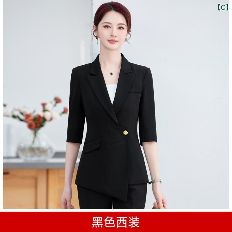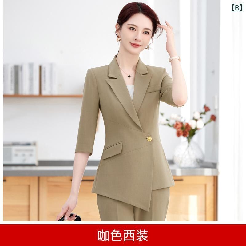 スーツ セットアップ レディース 女性用 七分袖 薄手 春夏 オフィス ビジネス カジュアル 事務服 制服 アンサンブル エレガント ジャケット スカート パンツ ポリエステル レーヨン