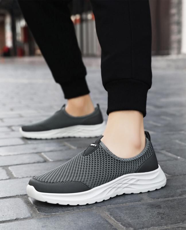 シューズ メンズ スリッポン カジュアル 靴 メッシュ 通気性 布製 軽量 普段使い 防臭 耐摩耗性 ラウンドトゥ フラット ダークグレー ブラック