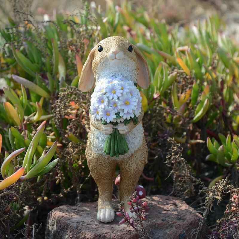 置物 女性向け かわいい うさぎ ミニチュア 樹脂製 フィギュア オーナメント ガーデン 庭 玄関 デスク 車内 卓上 おしゃれ インテリア 田園風 誕生日プレゼント ギフト