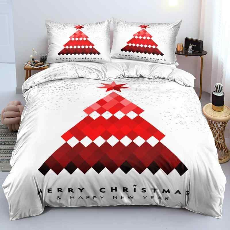 布団カバー 冬 クリスマスツリー柄 デジタルプリント カラフル おしゃれ 起毛加工 3点セット ポリエステル 柔らかい肌触り あったか 寝室用 ベッドリネン 寝具 アメリカンデザイン