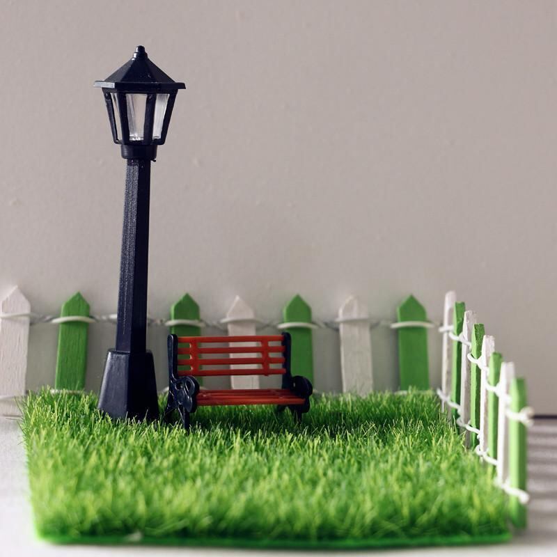 ドールハウス ミニチュア 街灯 公園ベンチ 芝生 セット 樹脂製 庭園 箱庭 テラス ガーデン ガーデニング ディスプレイ 装飾 オブジェ 景観模型
