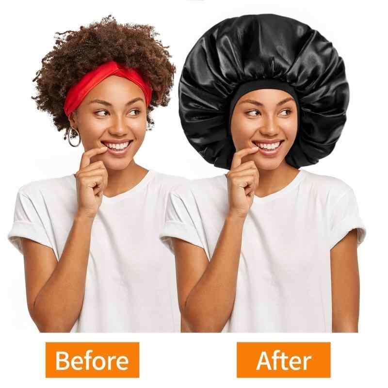 帽子 レディース ナイトキャップ サテン 伸縮性 無地 ボンネットタイプ 医療用帽子 就寝用 睡眠用 ゆったり 大きめ 通気性 薄手 入院 脱毛ケア 細縁 丸型 ブラック ピンク パープル