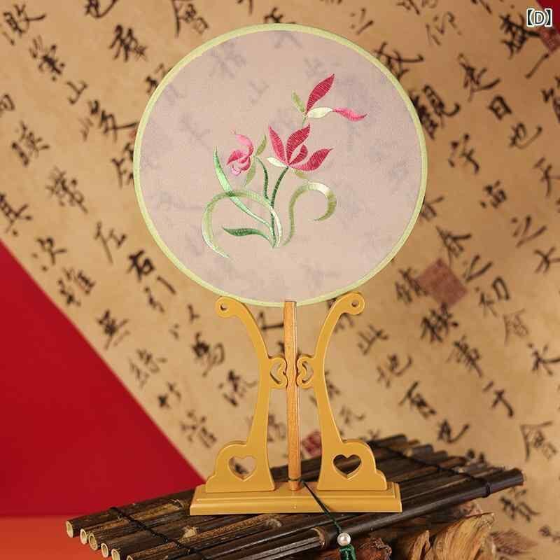 団扇 刺繡 古風 中国風 モダンチャイニーズ 円形 丸型 うちわ 絹布 シルク製 木骨 漢服 舞踊 チャイナドレス コスプレ 舞台 イベント 花柄 鳥柄 植物柄