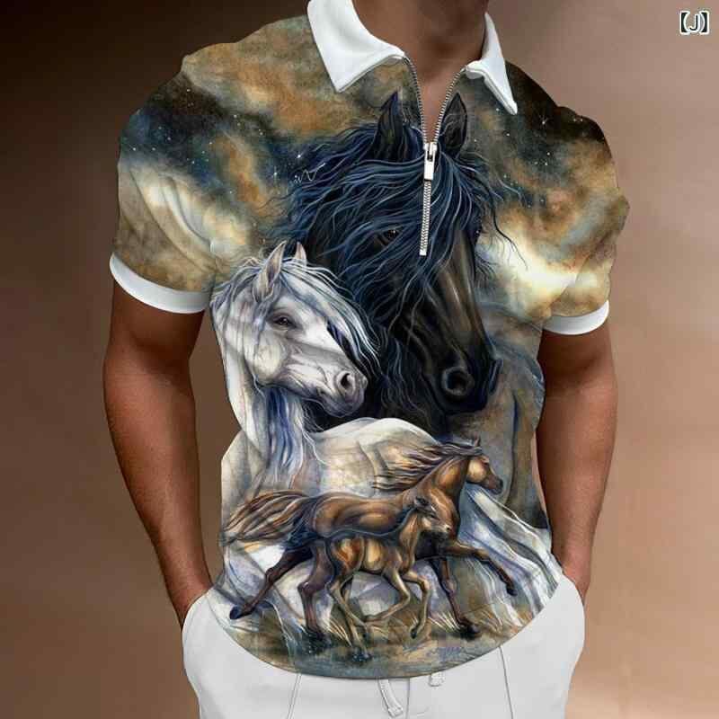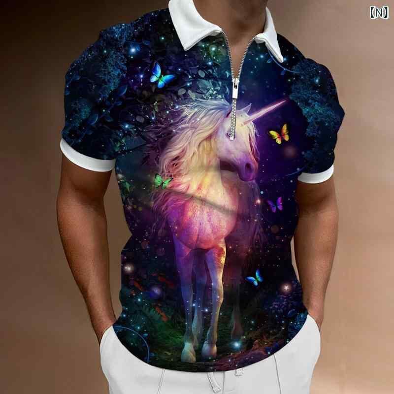 ポロシャツ メンズ 半袖 3Dリアルプリント 鷹 アニマル柄 ポリエステル混紡 吸湿速乾 通気性 夏 普段使い クール スタイリッシュ カジュアル トップス