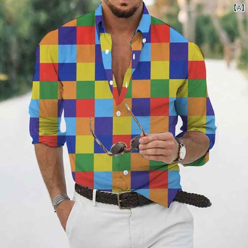 ・カテゴリ: シャツ・スタイル: カジュアル・主な素材: ポリエステル90%・ネックライン: 襟付き・袖丈: 長袖・柄: 格子柄・デザイン: プリント・タイプ: 開襟シャツ・シルエット: スタンダードフィット・厚さ: 普通・シーズン: 秋・対象: メンズ・年齢層: 成人・サイズ展開: S, M, L, XL, XXL, XXXL, XXXXL