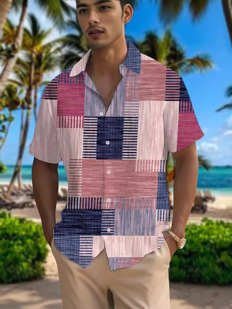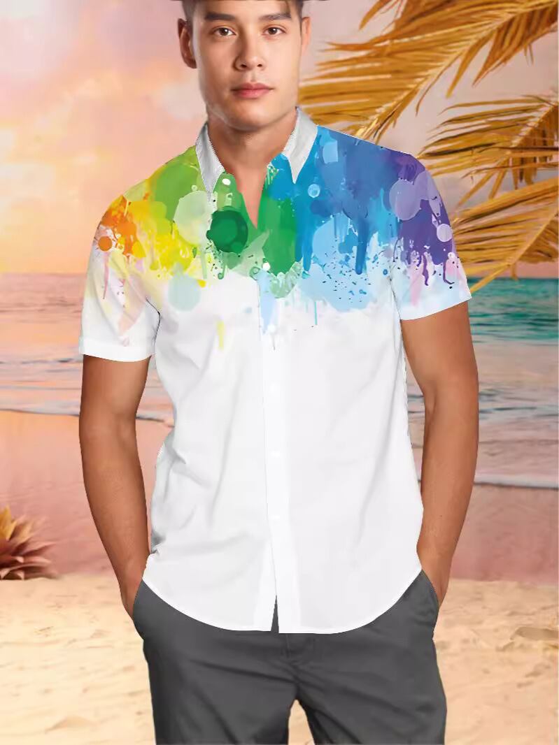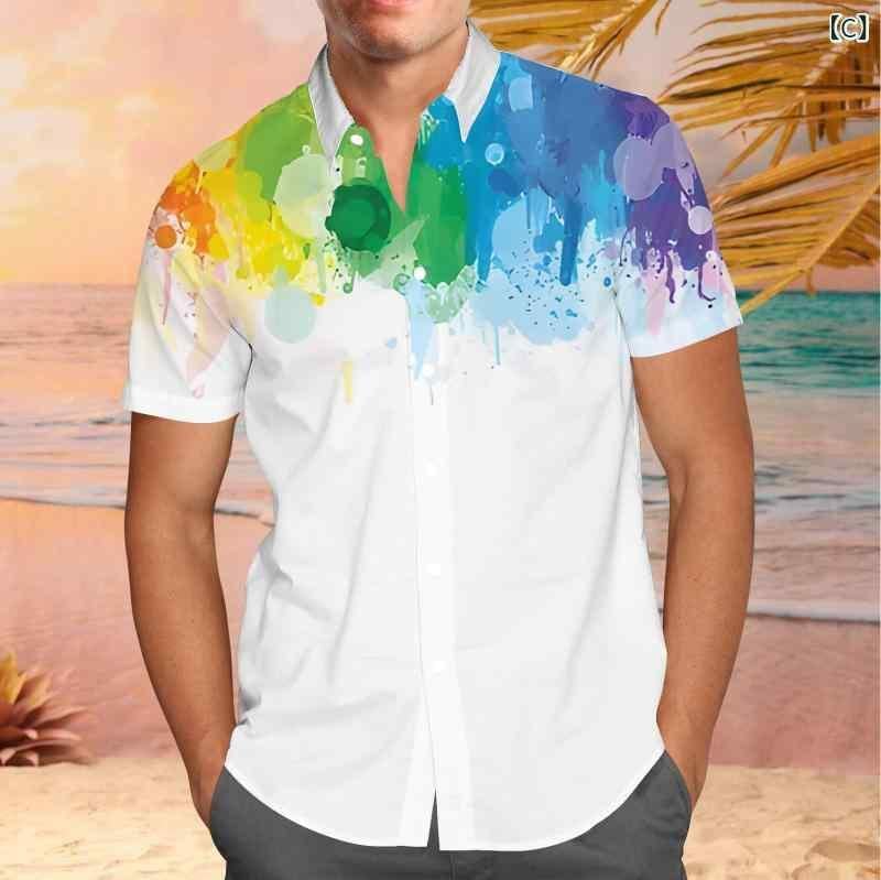 シャツ メンズ 春夏 半袖 リゾート ビーチ バケーション 旅行 カジュアル 大人カジュアル 迷彩柄 ポリエステル 通気性 吸湿速乾 薄手 開襟 オープンカラー