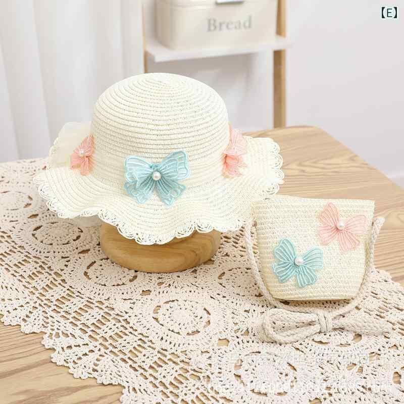 麦わら帽子 キッズ 女の子 夏 日よけ UVカット リボン かわいい プリンセス ビーチハット サマーハット つば広 ウェーブつば 通気性 麻素材 ベージュ ピンク カーキ ブルー オフホワイト