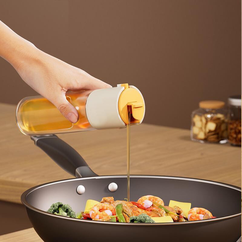オイルスプレーボトル スプレー&注ぎ一体型 2WAY 多機能 ガラス製 家庭用 キッチン 調味料入れ クリームホワイト アボカドグリーン 便利 おしゃれ