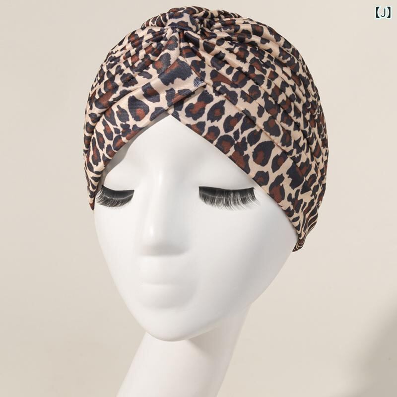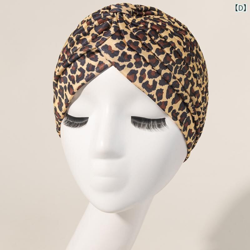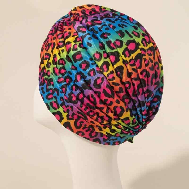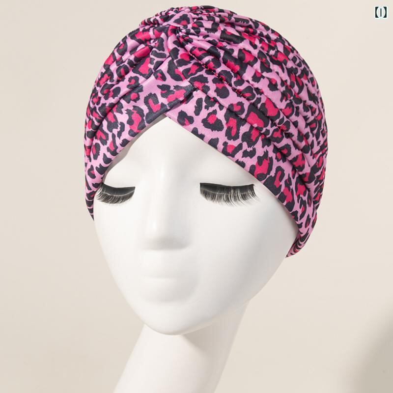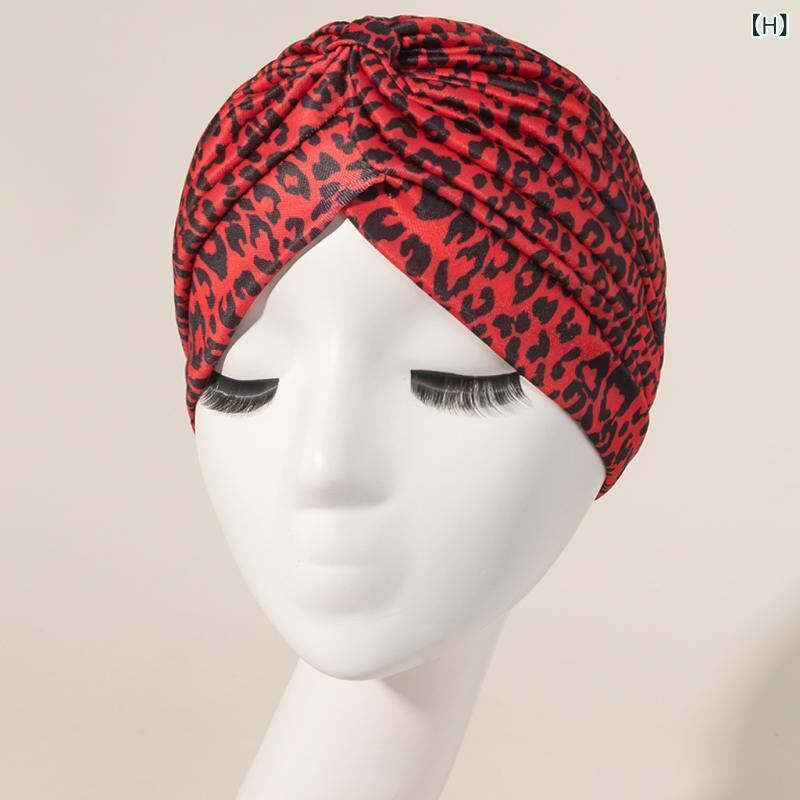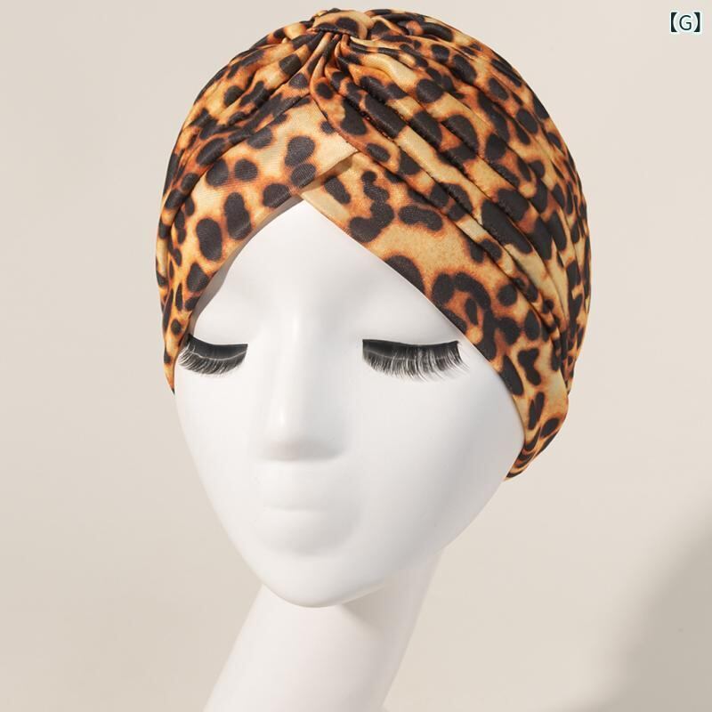 ターバンハット レディース 女性用 カラフル ヒョウ柄 アニマル柄 クロスデザイン プリーツ ギャザー ポリエステル つばなし 室内帽 普段使い おうち時間 リラックス インド風 かわいい