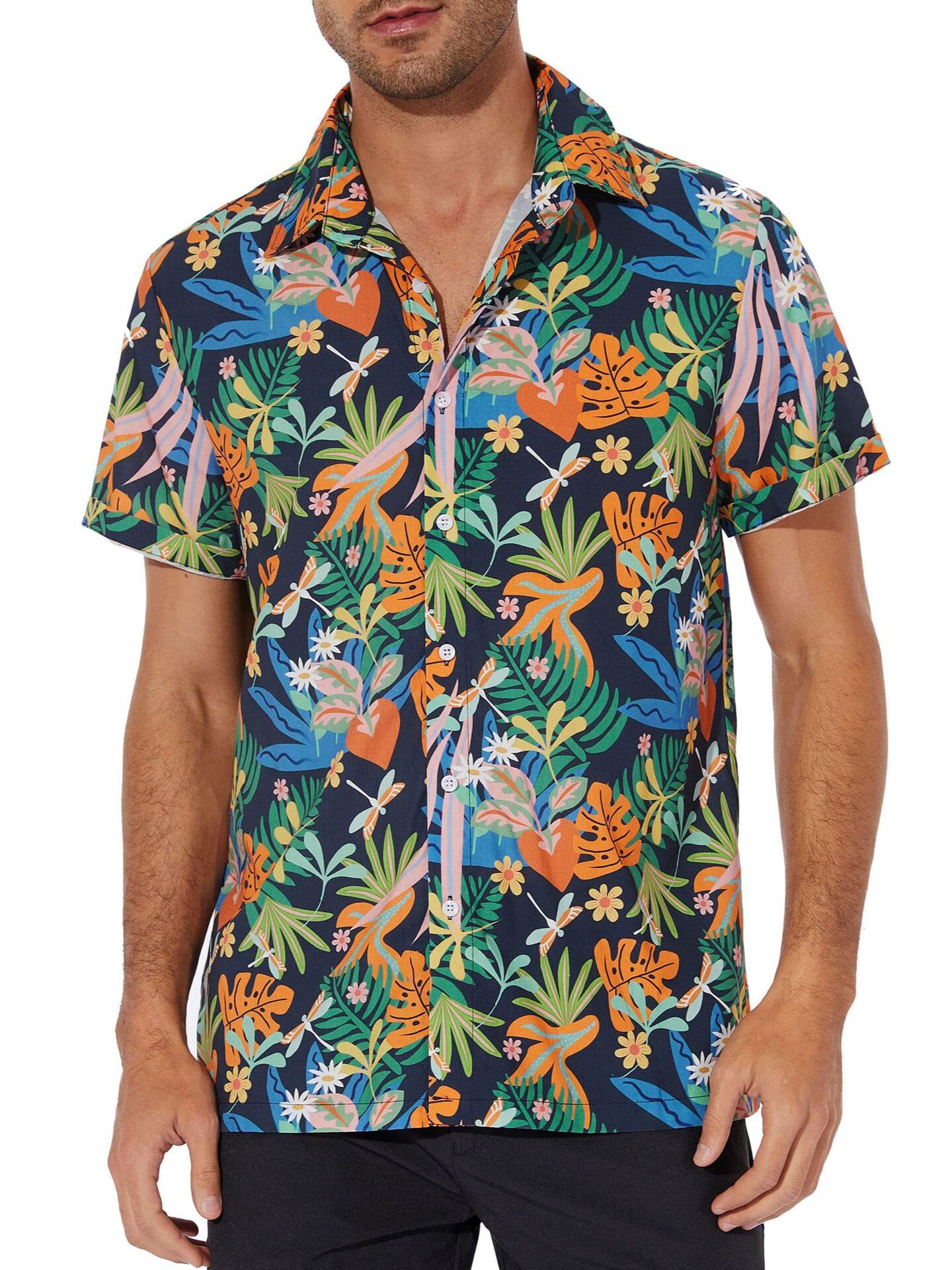 シャツ メンズ 半袖 スリムフィット 花柄 春夏 カジュアル 開襟 レトロ ポリエステル 伸縮性 ウォッシャブル