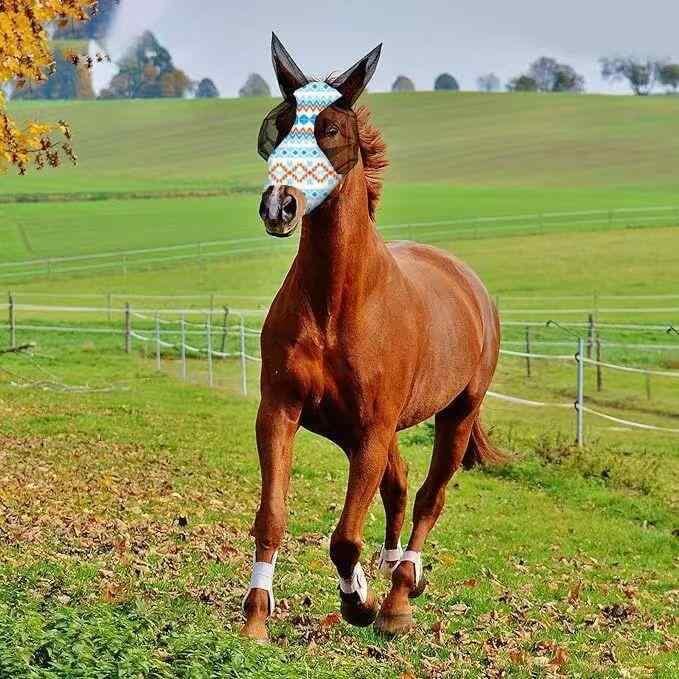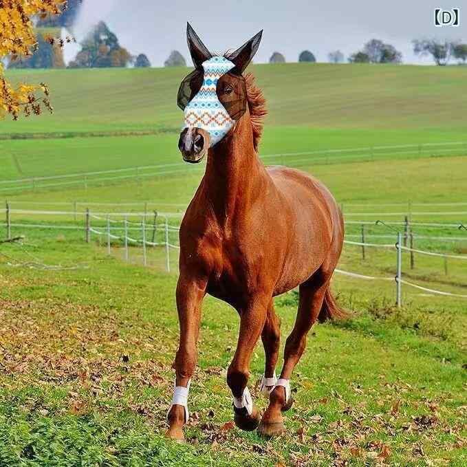 馬用マスク 防虫 通気性 軽量 伸縮性 ライクラ メッシュ素材 速乾性 顔保護 飛沫対策 馬術用具 ブラウン ダークグリーン 春夏