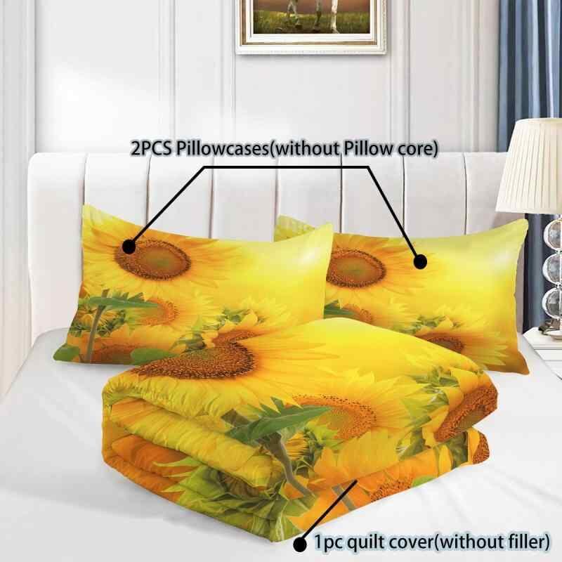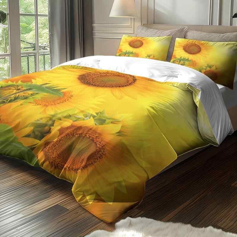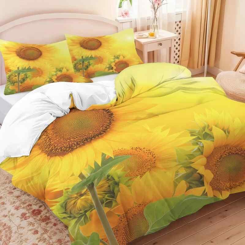 掛け布団カバー ひまわり柄 花柄 総柄 ボタニカル柄 デジタルプリント ポリエステル ピーチスキン加工 快適な肌触り 洗える おしゃれ 寝具3点セット