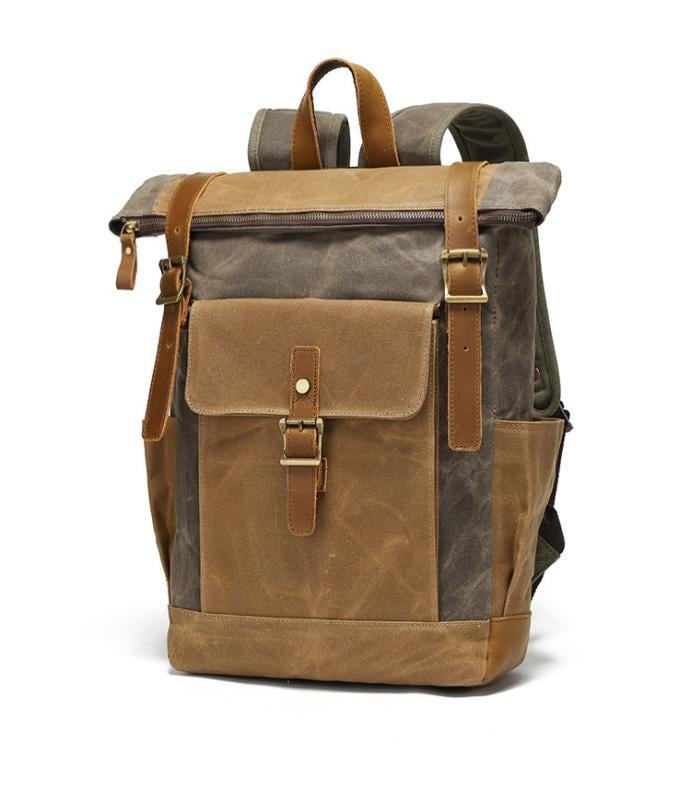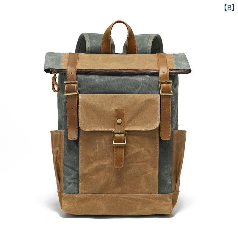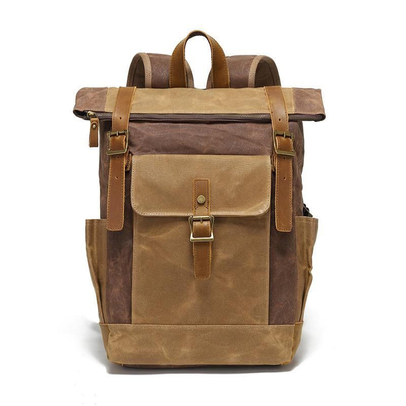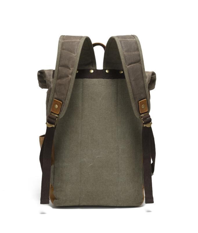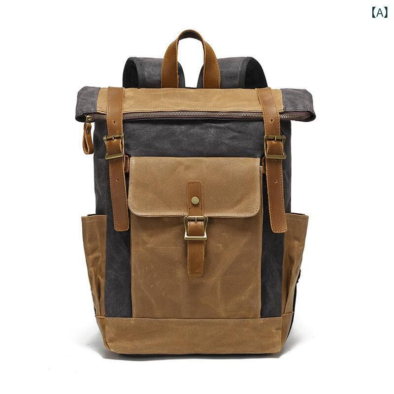 リュックサック バックパック ユニセックス 男女兼用 レトロ ビンテージ ワックスキャンバス 帆布 クレイジーホースレザー 牛革 本革 旅行 普段使い 12インチPC収納 大容量 負担軽減 カジュアル