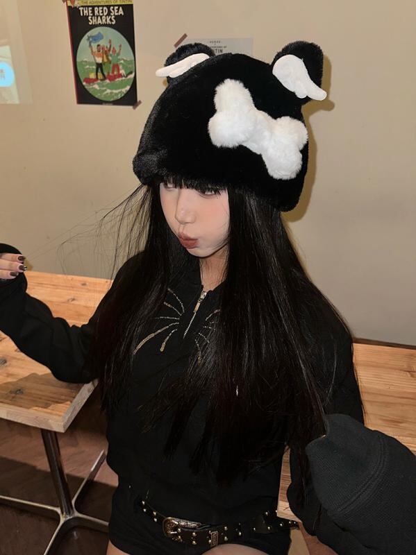 ニット帽 レディース 女性用 秋冬 あったか ふわふわ 天使の羽 クマ耳 ボーンデザイン かわいい 防寒 被り物 お出かけ 普段使い