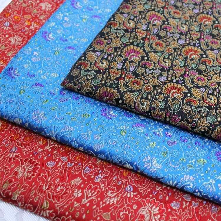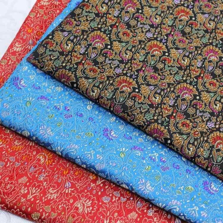 生地 ジャカード織り 錦織り緞子 シルク調サテン 中華風 レトロ古典柄 ケイトウ花柄 レーヨン ポリエステル混紡 チャイナドレス 舞台衣装 コスプレ 装飾 手芸 秋冬 黒 レッド ブルー系 パープル系
