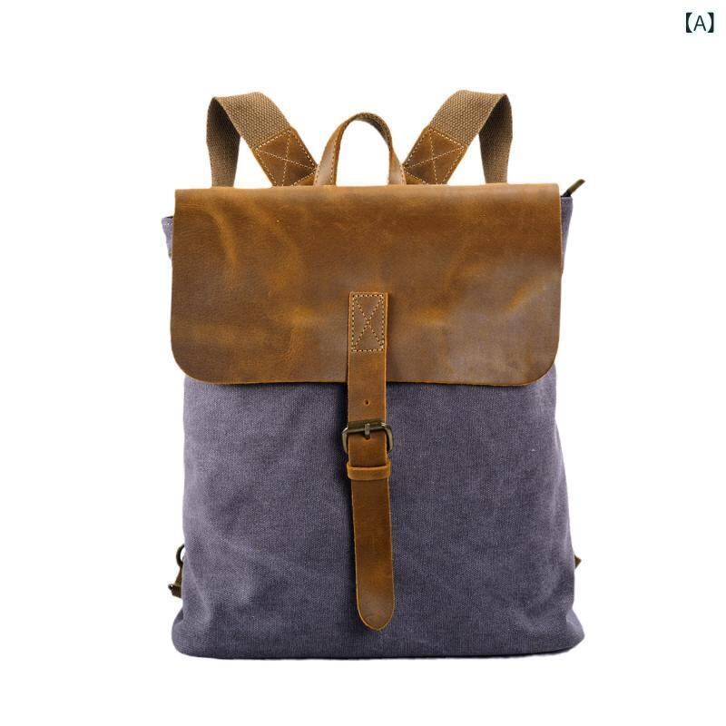 リュックサック バックパック レディース 日韓風 レトロ カジュアル シンプル キャンバス 牛革切り替え 学生用 通気性 13インチPC対応 コーヒー ブラック グレー アイボリー