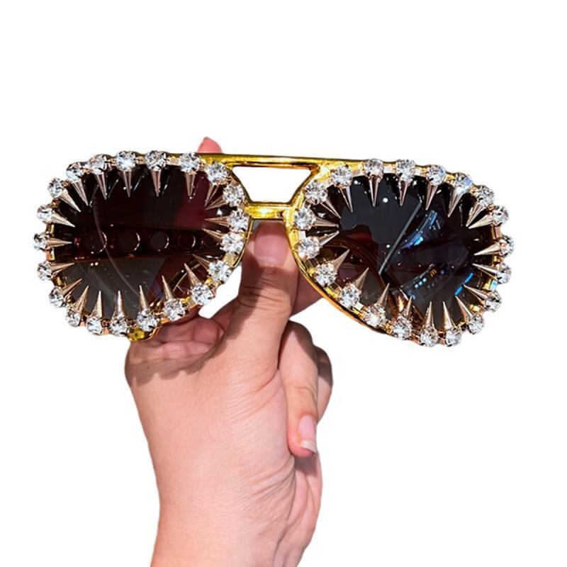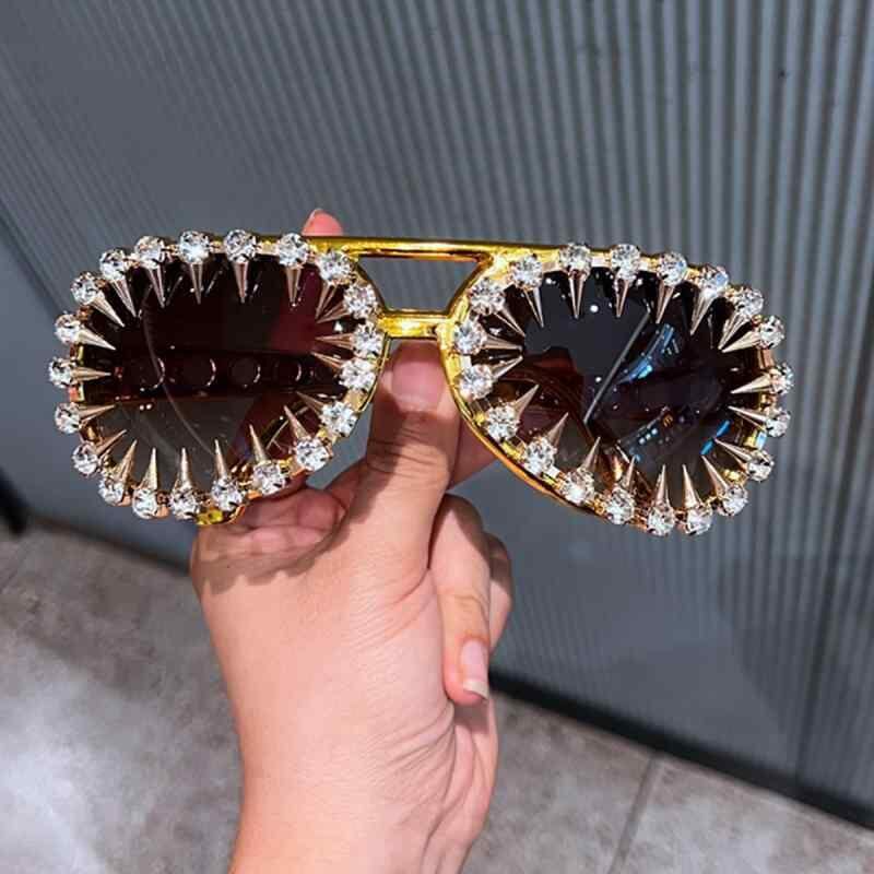サングラス 個性的 パンク メタルチェーン ファッション パーティー イベント 舞台演出 アビエーター型 UVカット ストリート ヒップホップ SNS映え ゴールド シルバー