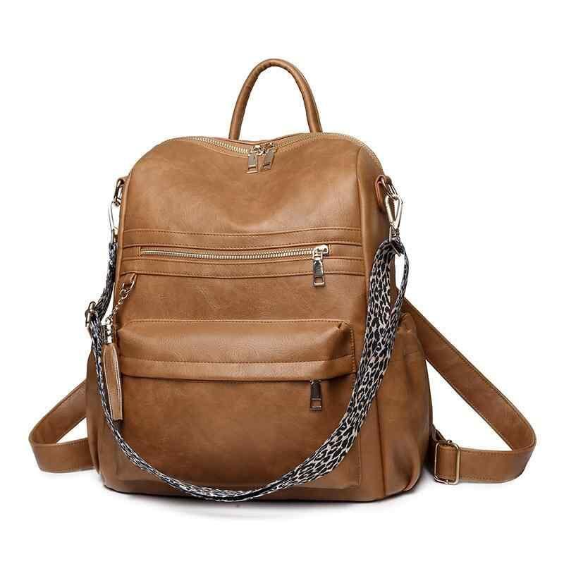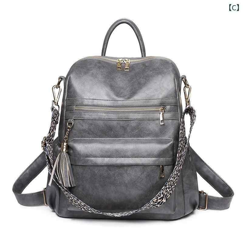 バックパック レディース 女性用 欧米風 レトロ クラシック フリンジ 切り替え PUレザー 防犯 軽量 衝撃吸収 普段使い デイリーユース 通勤 通学 ブラック ブラウン グレー アイボリー ヒョウ柄 ファスナーポケット スマホ収納 仕切り