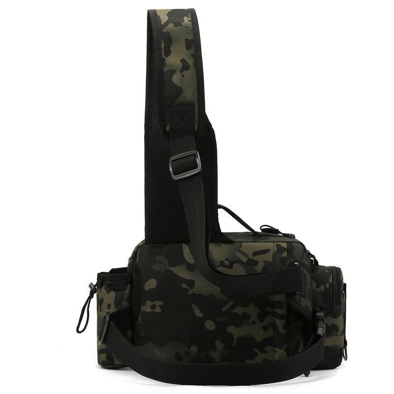 フィッシングバッグ ユニセックス 男女兼用 ルアー 釣り竿 収納 大容量 多機能 ウエスト ショルダー アクセサリポーチ 軽量 耐摩耗 ポリエステル アウトドア 迷彩柄 ブラック ブラウン