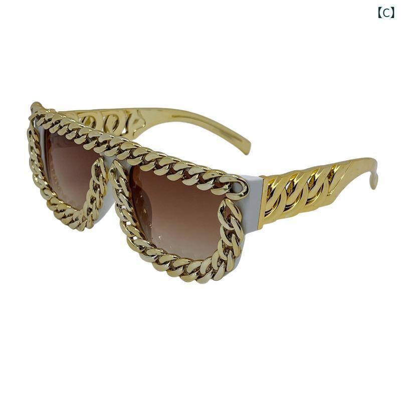 サングラス 男女兼用 スクエア チェーン 個性派 ヒップホップ パンク ストリート ゴージャス UV400 紫外線対策 PCレンズ ファッション アイウェア パーティー イベント 春夏