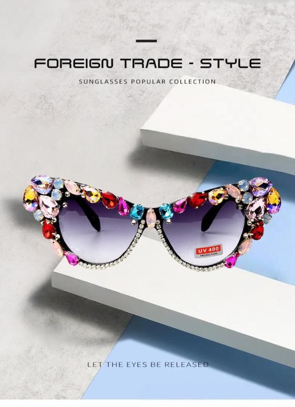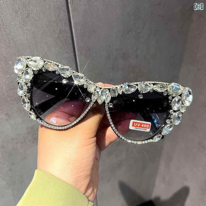 サングラス レディース ビッグキャットアイ 欧米風 レトロ ヴィンテージ ラインストーン キラキラ 高級感 個性派 パーティー 旅行用 UV400 春夏 アイウェア