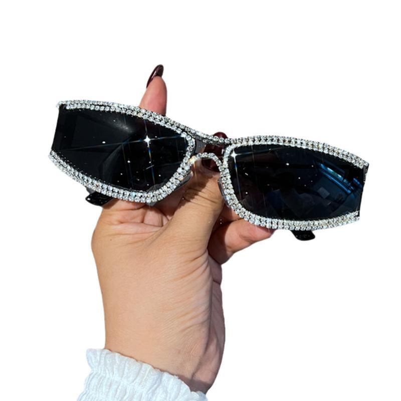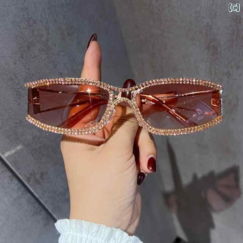 サングラス レディース Y2K レトロ ヴィンテージ カットアウト 変形フレーム ラインストーン メタルフレーム UVカット ストリート ファッション 旅行 アウトドア パーティー 個性的 ブラック ピンク ブラウン フルリム