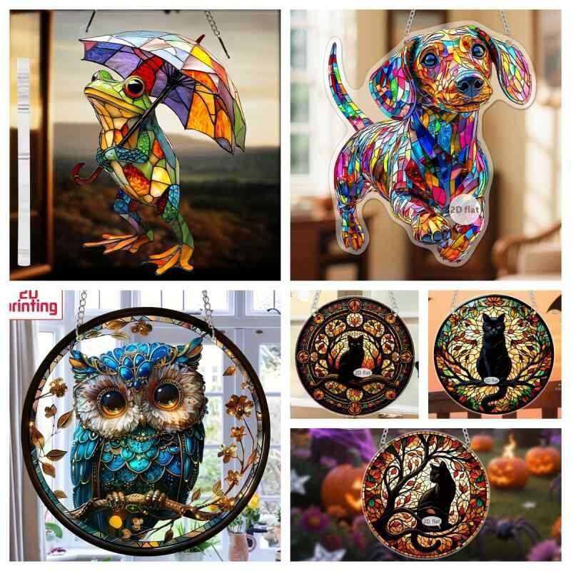 ガーデンオブジェ アニマル カエル 猫 犬 クマ ブタ 2D 平面 アクリル製 欧米風 ユニーク 庭 室内 ホームデコレーション 吊り下げ オーナメント