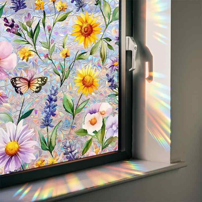窓用シート 静電吸着 デイジー 花柄 サンキャッチャー効果 飛散防止 目隠し 採光 窓ガラスフィルム PVC製 北欧風 リビング 寝室 子供部屋 カラフル