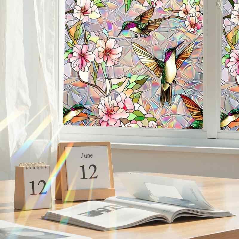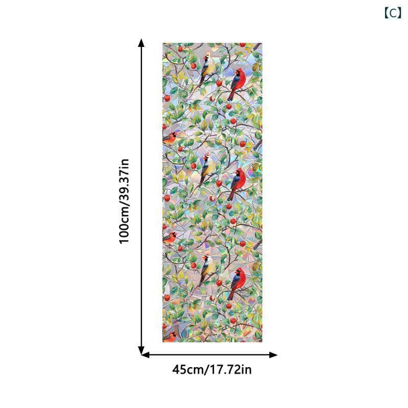 窓用フィルム 静電気吸着 ステンドグラス風 カラフル リーフ柄 小鳥 ボタニカルデザイン 鳥衝突防止 目隠し UVカット 飛散防止 リビング 寝室 浴室 玄関 窓 装飾フィルム