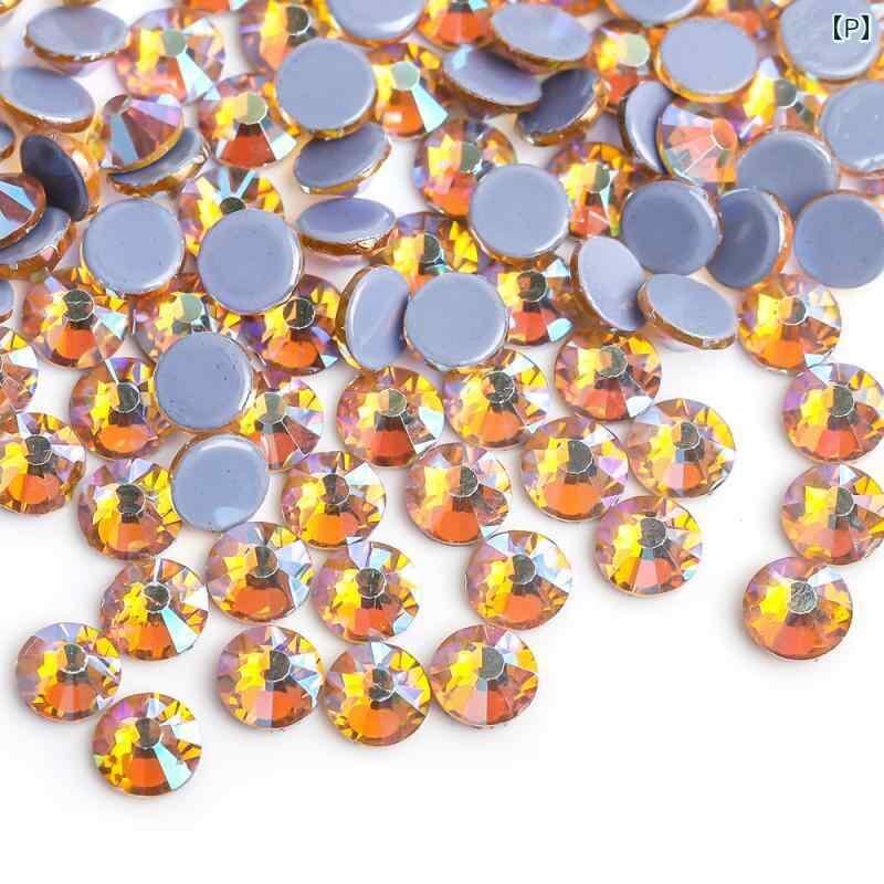 ラインストーン ホットフィックス アイロン接着 ガラス製 ABカラー ホットメルト接着 丸型 DIY スマホケース 服飾 装飾パーツ 高輝度 Aグレード 電気メッキ加工
