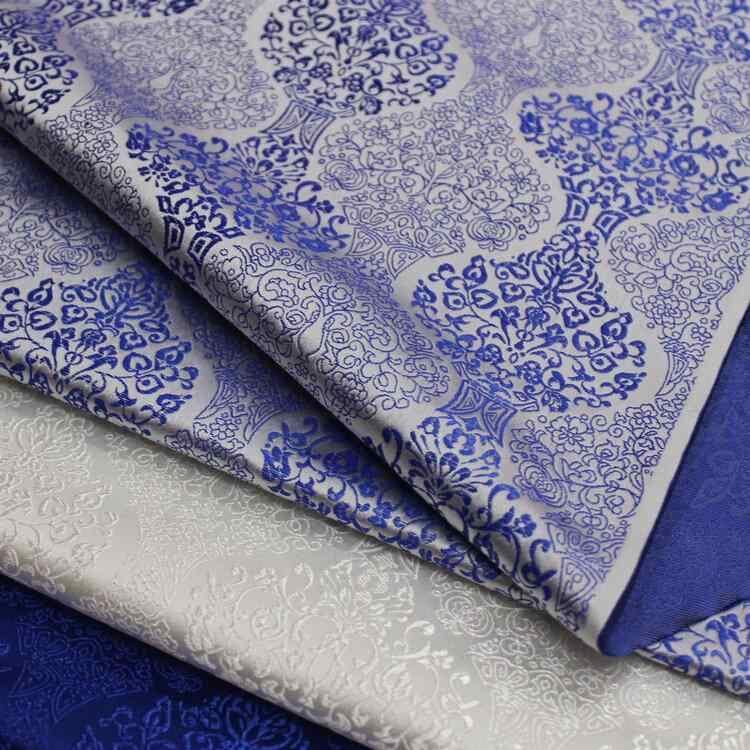 生地 織錦緞 ジャガード織り レーヨン ポリエステル シルク調 中国風 レトロ調 古典柄 チャイナドレス ドール服 子供服 民族衣装 舞台衣装 装飾布 クッションカバー 寝具 白地 青 秋冬