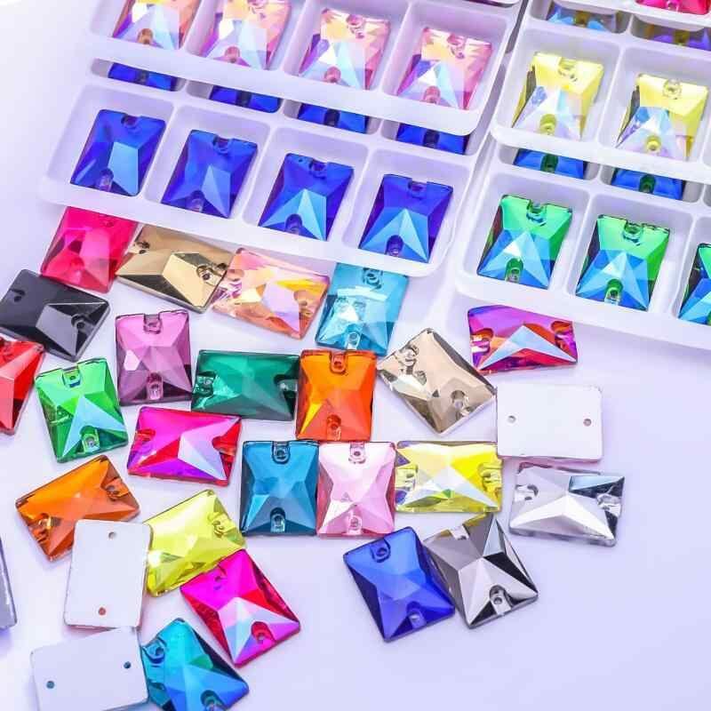 縫い付けラインストーン 長方形 ガラス製 フラットバック 手芸パーツ DIY ドレス ウェディングドレス 衣装装飾 電気メッキ加工 豊富なカラー 多サイズ対応