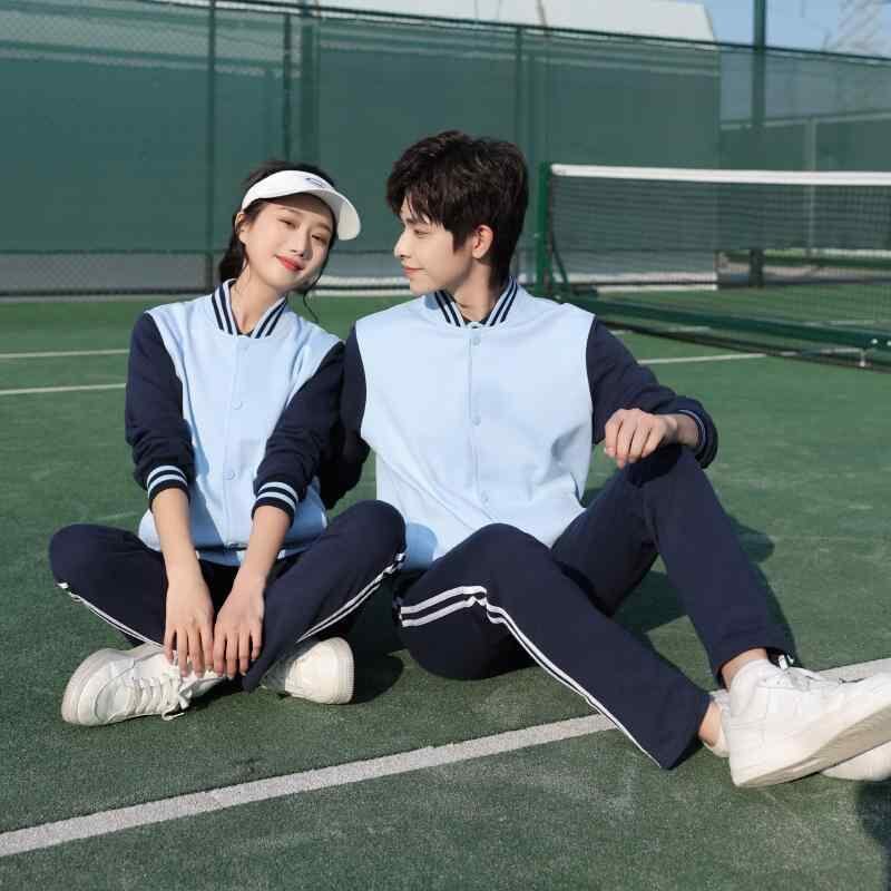 セットアップ 中高生 大学生 男女兼用 スポーツジャージ 上下セット 春秋 運動会 部活動 ランニング 普段使い 学院風 カジュアル 綿 コットン 長袖 スタンドカラー ダークグレー ライトブルー