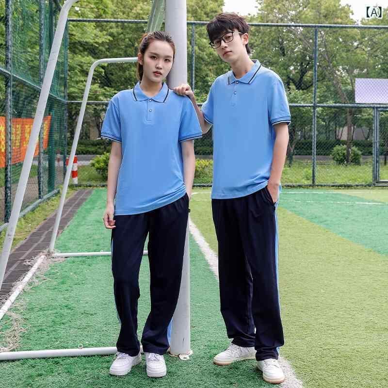 セットアップ キッズ 男女兼用 ポロシャツ 半袖 ストライプ柄 ストレートパンツ 上下セット 通学 ダンス 発表会 衣装 綿 ポリエステル ストレッチ 吸湿速乾 カジュアル スポーツ 普段使い 春夏