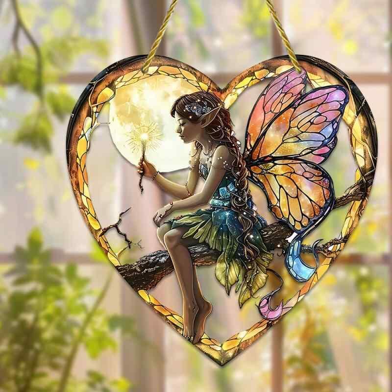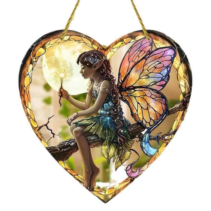 サンキャッチャー 妖精 蝶 魔法の杖 ハート カラフル アクリル製 ガーデン アウトドア 窓辺 インテリア 吊り下げ オーナメント 光反射 きらきら かわいい