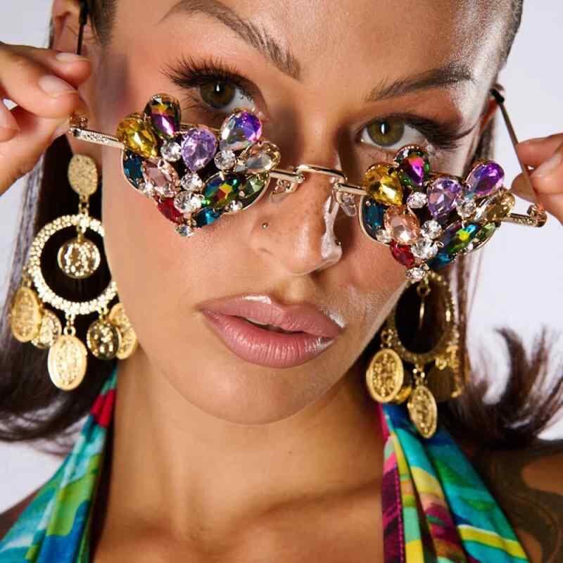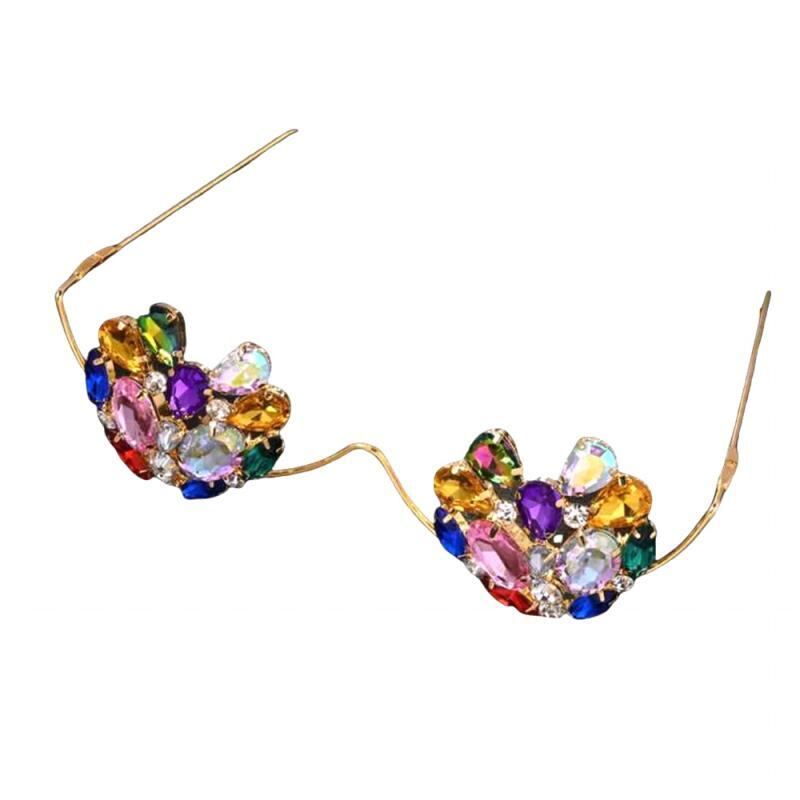 伊達メガネ レディース カラフル ハート型 個性的 デザイン性 ラインストーン装飾 メタルフレーム ファッション小物 トレンド アイテム 撮影用