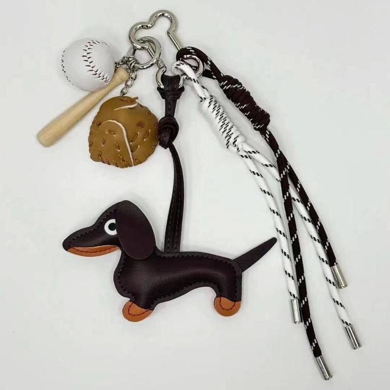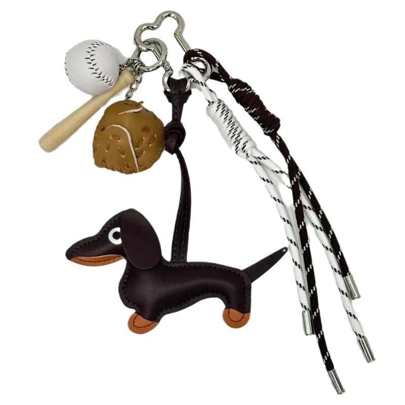 ・カテゴリ: バッグチャーム・素材: 人工皮革・製法: 純手作業・スタイル: 可愛い・テイスト: 個性的トレンド・柄: クマ、ブタ、小動物・流行要素: カートゥーン、人物・デザイン: 野球ダックスフントチャーム
